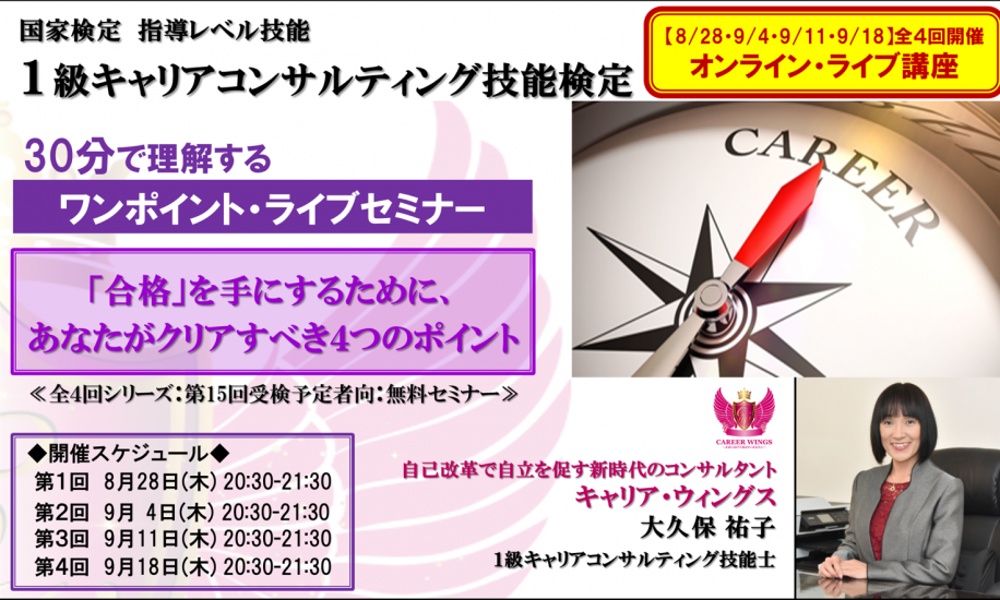 ◇◆1級キャリアコンサルティング技能検定 ワンポイント・ライブセミナー【…